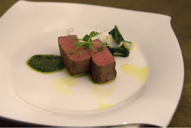 【肉料理】黒毛和牛もも肉のポアレ 香草のサルサ