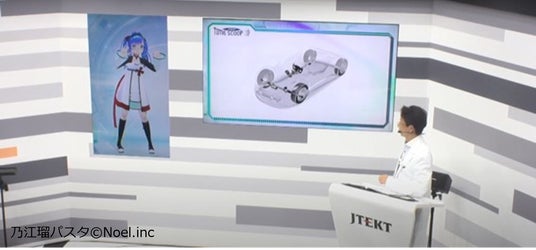ジェイテクトの様々な技術を紹介する主要プログラム:JTEKT TIME SCOOPにて、Vtuber「乃江瑠パスタ」がバーチャルMCとして現地会場のプレゼンテーターとリアルタイムにコミュニケーションを取り、ジェイテクトの技術をわかりやすく紹介しました。