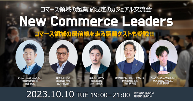今回の『New Commerce Leaders』では、ゲストとしてコマース領域の最前線を走る5名の先輩経営者をお招きし、起業家自身の悩みをカジュアルに相談できる機会、そして、事業開発から成長までのノウハウやシード・アーリー期の起業家が今後直面する課題等多くの経験知や視座を得られる機会を目指しています。