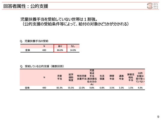 児童扶養手当を受給していない世帯は1割強。