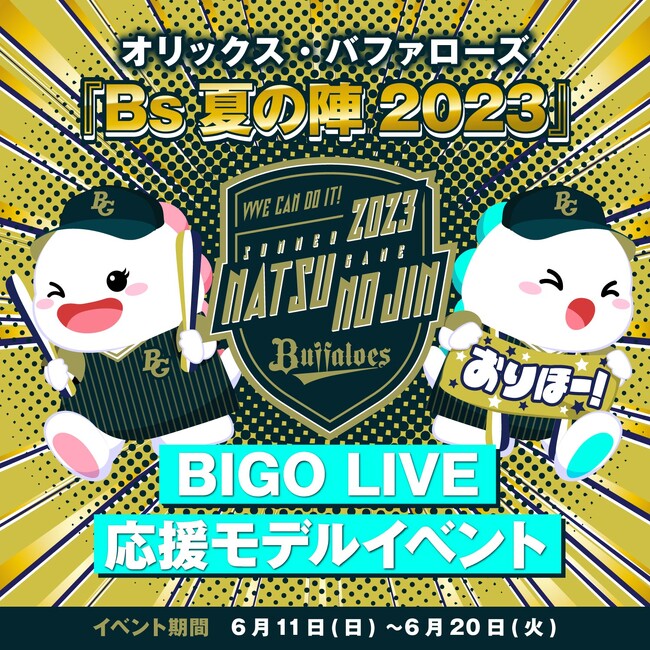 大人気グローバルライブ配信アプリ「BIGO LIVE(ビゴライブ)」を運営するBigo ServiceJapan株式会社(東京都渋谷区、URL:https://bigolive-jp.com/ja/jp/)は、オリックス・バファローズが夏の風物詩として開催している「Bs夏の陣 2023」開催に伴い、コラボイベント『オリックス・バファローズ 「Bs夏の陣 2023」BIGO LIVE 応援モデルイベント』(開催日時:2023年6月11日 ~6月20日)を開催します。