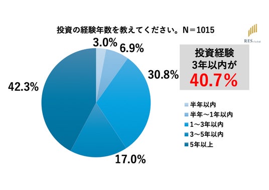 「金融広報中央委員会が2023年に実施した『家計の金融行動に関する調査』によると、株式投資を行っている会社員の平均投資金額は131万円で、投資経験3年目の場合は平均で345万円のようです。当社のYouTubeを視聴する会社員の4割は経験が3年以内、3割は投資資金が500万円未満ということで、金融広報中央委員会が実施した調査の通り、投資経験が3年以内の場合は、投資に利用できる資金は500万円以下が多いことが予想されます」(RES代表・児玉一希)。