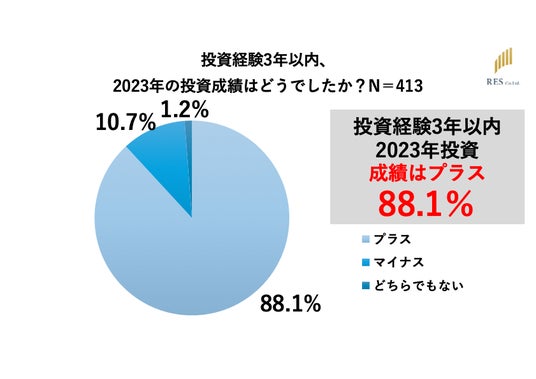 投資経験が3年未満、2023年の投資成績はプラスと9割近く回答