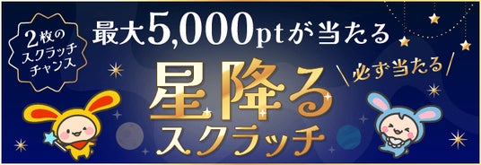 当キャンペーンでは、対象期間中にワラウに登録し「はじめての方限定キャンペーン」を達成された方に、最大2,000ptが当たる「星降るスクラッチ」をプレゼント!