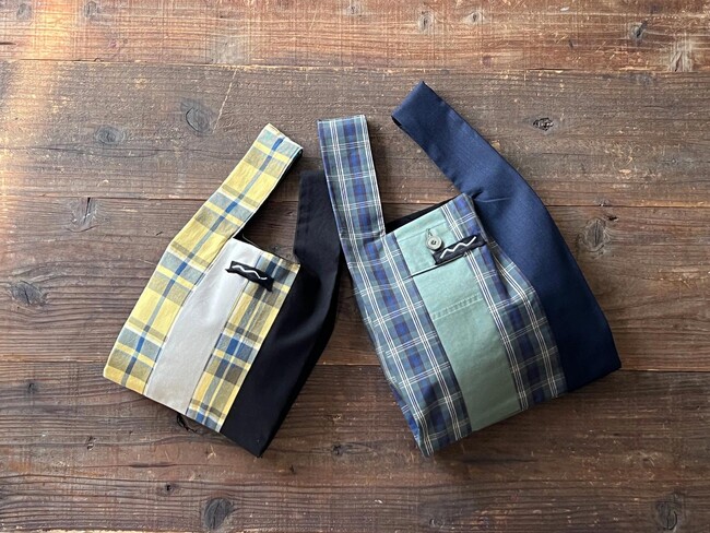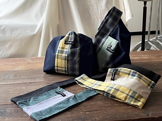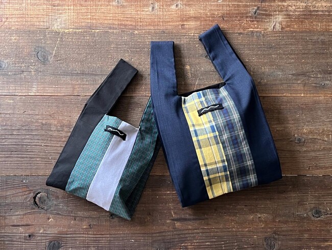 今回「 R.I.P 」にインターンシップとして参加している静岡県内の専門学生が一点一点丁寧に仕上げた「 ZANTAN series 」新作アイテム「Marche bag 」の販売が公式サイトにてスタートしました。表地の一部や裏地には、誰にも着られずに綺麗な新品のまま倉庫で眠っていた服を解体した生地を使用し、チェックの残反との組み合わせを考え、デザイン・縫製しています。