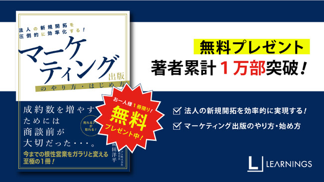 ラーニングス株式会社(本社:東京都渋谷区 代表取締役:梶田洋平)は、『マーケティング出版のやり方・はじめ方』(著:梶田洋平)の書籍無料プレゼントを開始しました。