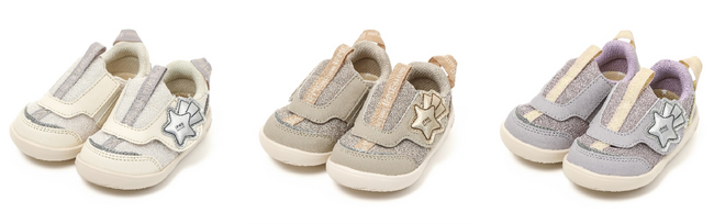 「ifme nature」では、ベルト部分に流れ星のデザインを施した「ifme nature ほうき星 ifme patto スニーカー」が登場します。ホワイト・パープル・ベージュ(※ベビーサイズのみ)・グリーン(※キッズサイズのみ)の4色展開で、女の子・男の子どちらでもお使いいただけるデザインです。