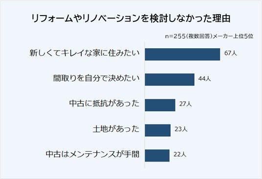 また「中古住宅への抵抗感があった」という人も多数。中古住宅の場合、キレイにリフォーム・リノベーションしてあっても、見えない部分に傷みがあるかもしれないという不安もあります。不具合がたくさん出てくると、安く買っても維持費が高くなるかもしれません。