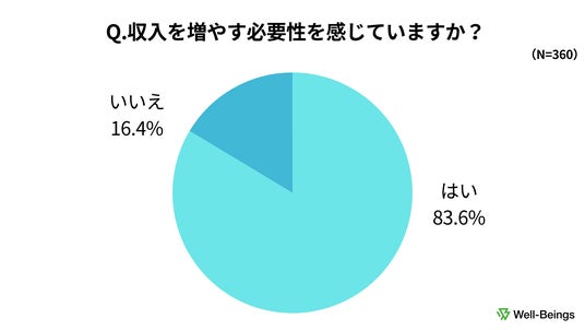 「ITの力で多様性のある働き方に変えていく」をミッションに掲げる、株式会社ウェルビーイングス(本社:東京都港区六本木、代表取締役:大泉 弘晶)は、20歳以上の男女360人を対象に、収入アップと働き方に関するインターネット調査を実施いたしました。