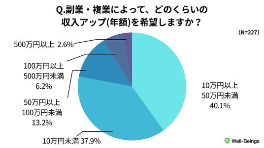 Q: 副業・複業によって、どのくらいの収入アップ(年額)を希望しますか?