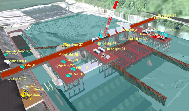 現場3Dモデル上に資機材の位置を可視化することにより、広大な敷地の現場でも資機材の管理を効率的に行うことができます。これにより、活用していない資機材も判別できるため、そのような資機材があれば返却するなど、無駄をなくすことにもつながります。