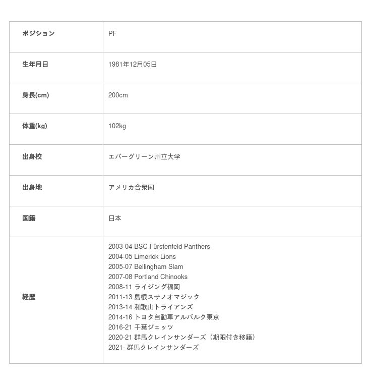 ファンの皆様、日頃からの温かいサポート誠にありがとうございます。私はまた新しいシーズンも群馬に戻ってきて、我らがクレインサンダーズのために闘えることをとても嬉しく思っております。我々はすでに確固としたチームの基盤を作り上げて参りましたので、次はそれを我々がより強いチームにしていけるシーズンだと期待でいっぱいです。また今季もシーズンを通してフルでこのオープンハウスアリーナ太田でプレーすることをとても楽しみにしておりますので、どうぞ宜しくお願い申し上げます。」