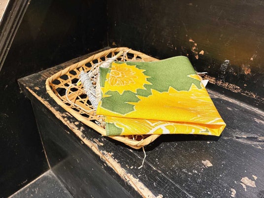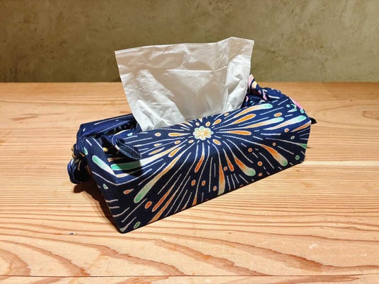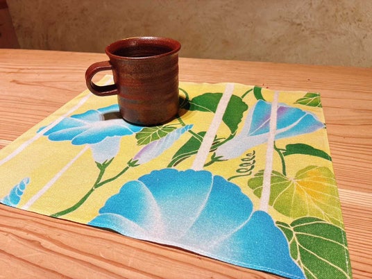こうした中、一般社団法人アップサイクルに参画している「毎田染画工芸」の友禅作家である毎田仁嗣・監修のもと、2023年6月から「京都精華大学」の学生が友禅染により“手ぬぐい”を制作するプロジェクトが発足し、2025年4月には第2弾となる製品を発売しました。生地には一般社団法人アップサイクルが推進している、使用後の紙資源や間伐材を生まれ変わらせた紙糸「TSUMUGI」を使用しており、伝統技術と地球環境を次世代につないでいくプロジェクトでもあります。