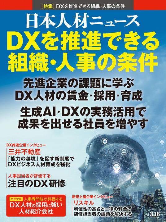 人事専門誌「日本人材ニュース」を発行する株式会社日本人材ニュース社(東京都千代田区、代表取締役:吉越利成)は、2025年5月10日に人事専門誌「日本人材ニュース vol.336~DXを推進できる組織・人事の条件」を発行しました。