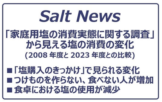 「『家庭用塩の消費実態に関する調査』から見える塩の消費の変化(2008年度と2023年度との比較)」 公益財団法人塩事業センター