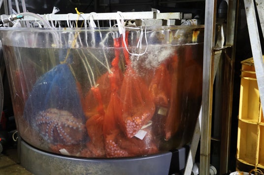 「酸素気液混合ウルトラファインバブル」を注入したタコの一次保管生簀
