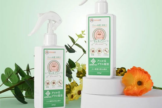布団やソファ、カーペットなどに吹きかけることで、アレルギーの原因とされるダニの糞・死骸を抑制するスプレーです。化学成分は使用せず、天然鉱物由来の無機塩「アレルGプラス」を主成分としています。