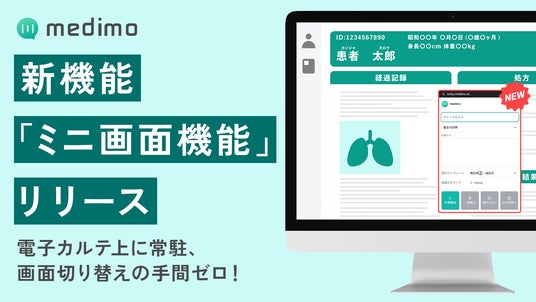医師率いる医療AIスタートアップ株式会社medimo(本社:東京都港区、代表取締役社長:中原 楊)はが提供する、AIによる診療録作成支援サービス「medimo(メディモ)」において、PC画面上でmedimoをコンパクトに表示・操作できる新機能「ミニ画面機能」を実装したことをお知らせいたします。