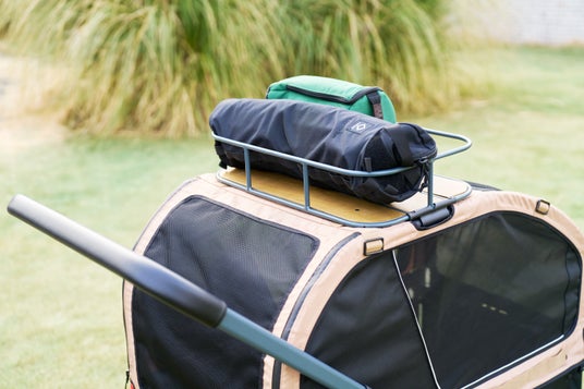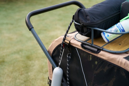 いざカートが必要となった時に初めてのカートに戸惑い、受け入れられない犬も多いことから、元気なうちから使ってもらえるよう、アウトドアカートとしても使えるデザイン設計に。移動手段としての役割はもちろん、ルーフを外せば大量の荷物を運べるキャリーカートとしても活躍します。超大型犬を乗せても低重心フレームとベアリング内臓の大型タイヤでストレスなく走行できます。