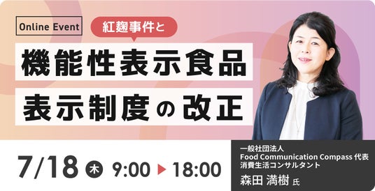 「紅麹事件と機能性表示食品表示制度の改正」は、いつでもどこでも参加可能なオンライン形式です。