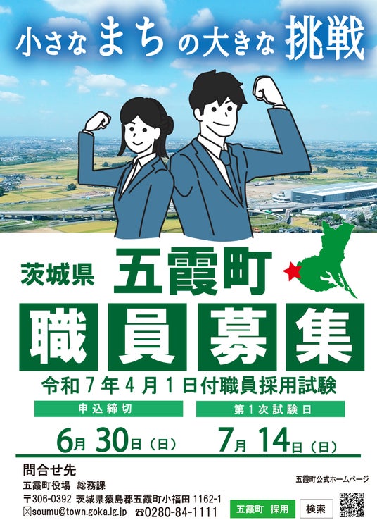 茨城県で最も小さいまち・五霞町(ごかまち)が、令和7年4月1日付けで任用する職員の採用試験を実施。募集期間や試験日程など詳細を公開。求む挑戦する仲間たち。