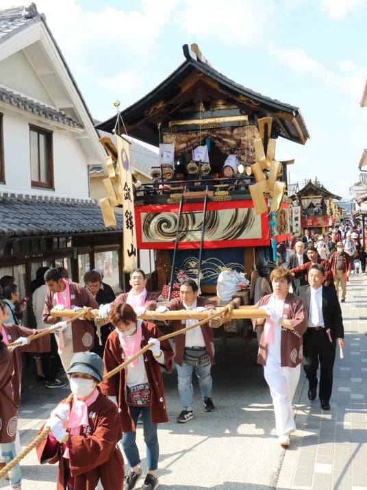 9台の鉾山と4台の神輿が篠山城下町を巡行し、笛や太鼓の音色が響き渡ります。