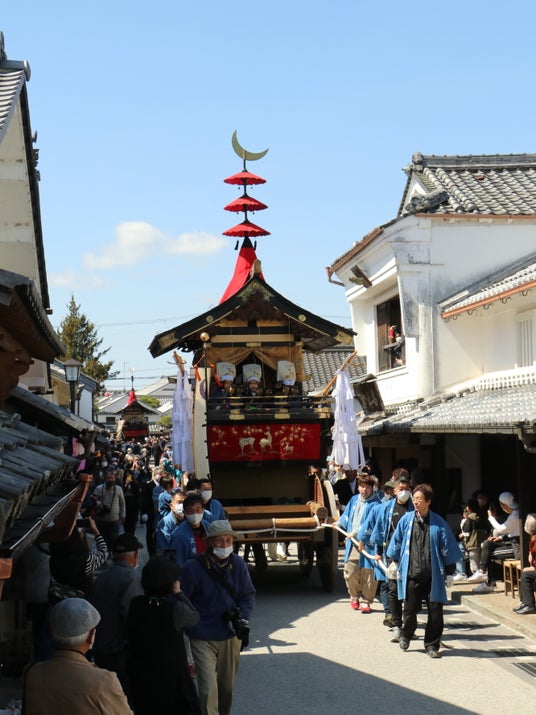 「重要伝統的建造物群保存地区」河原町では鉾を屋根に掲げた鉾山が特別巡行を行います。