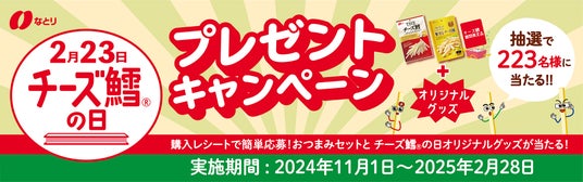株式会社なとり(本社:東京都北区 会長兼社長:名取三郎)は、「チーズ鱈の日プレゼントキャンペーン」を2024年11月1日(金)から実施いたします。