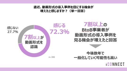 - BtoB事業者の7割以上が、動画形式の導入事例を見る機会が増えたと回答。