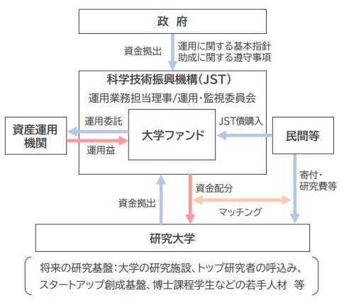 JSTには、世界と伍する研究大学の実現に向け、必要となる支援を長期的・安定的に行うための財源を確保することを目的として大学ファンドが創設されており、約10兆円を元本としてJSTがその運用を担っています。