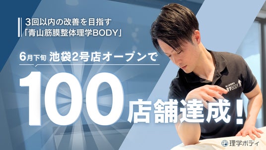 理学療法士の技術で、世界中の人々の健康を支えることを目指す株式会社理学ボディ(本社:東京都渋谷区、代表:木城拓也)は、“通わせない整体”をコンセプトとした「青山筋膜整体理学BODY」の全国店舗数が、このたび100店舗を突破したことをお知らせします。