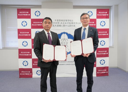 共立女子大学・共立女子短期大学(東京都千代田区)と千葉黎明高等学校(千葉県八街市)は、教育における交流と連携を通じて大学進学に関する高等学校生徒のキャリア意識と学習意欲を高め、双方の教育の質の向上と活性化を図るべく高大連携協定を締結し、2025年3月5日(水)に調印式を執り行いました。
