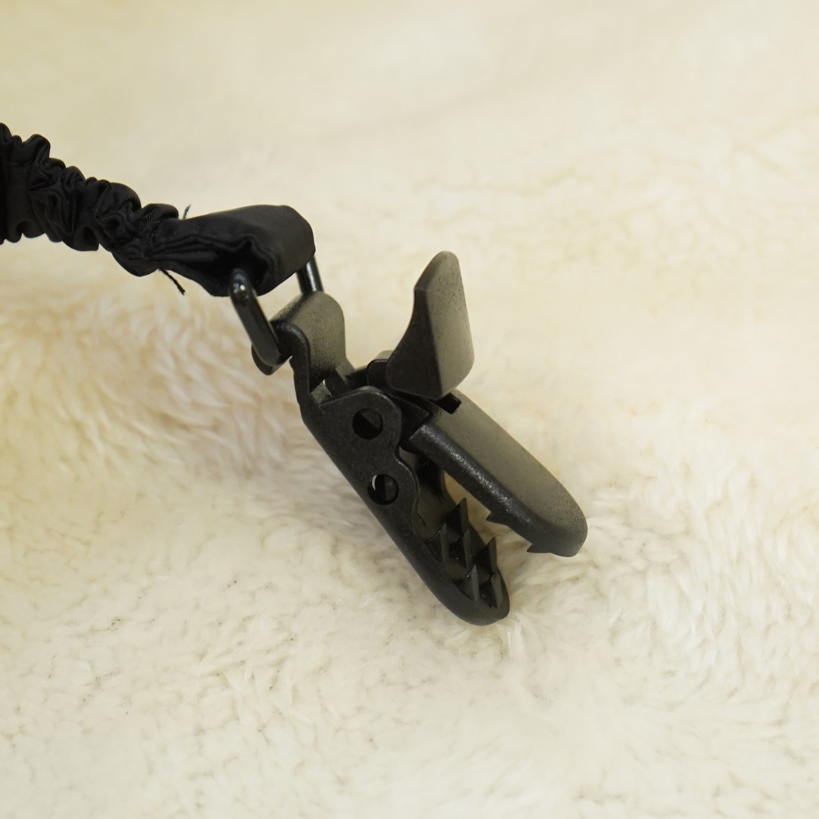 今回のリニューアルでは、従来のクリップを見直し、ロック付きクリップへ変更。爪(ギザ歯)付き構造が生地をしっかり保持し、さらにロック機構が不意の開きを抑制します。装着は片手でカチッと留めるだけ。抱っこや荷物の持ち替えと並行しても、短い所作で着脱できます。