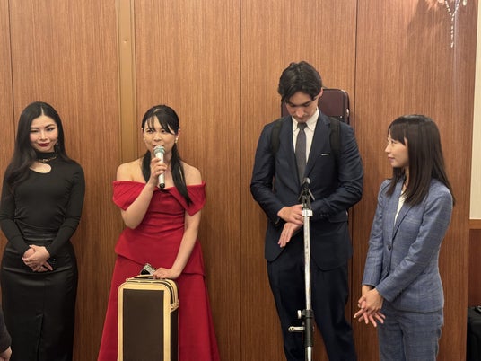 左からアコーディオン奏者の土屋恵氏、ヴァイオリニストの寺下真理子氏、株式会社atsumari COO & Co-Founderのカポラリ真亮氏、宮脇咲