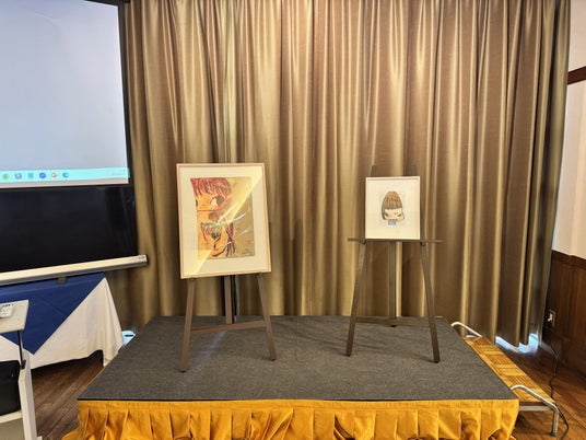 イベント会場に展示された、ロッカクアヤコ氏と奈良美智氏の作品