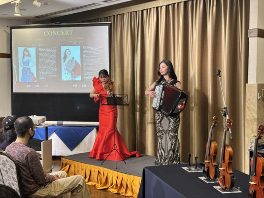 バイオリン職人であるカポラリ真亮氏からは、参加者全員が初見であったヴァイオリン投資に関する話、またヴァイオリニストの寺下真理子氏とアコーディオン奏者の土屋恵氏による演奏会も行われました。