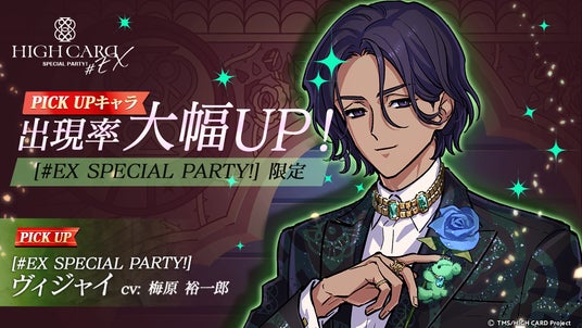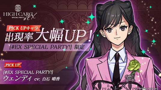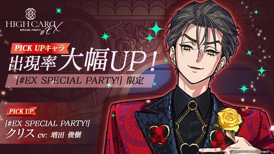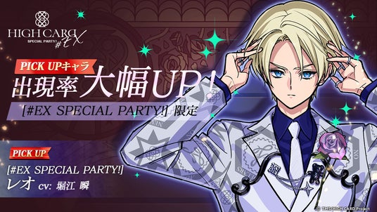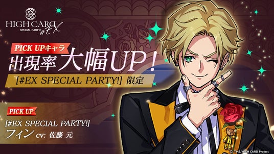 『HIGH CARD』完結記念イベント「HIGH CARD #EX SPECIAL PARTY!」開催記念として、フィン、クリス、レオ、ウェンディ、ヴィジャイの特別衣装のキャラクターが手に入る限定ガチャを実施中です。