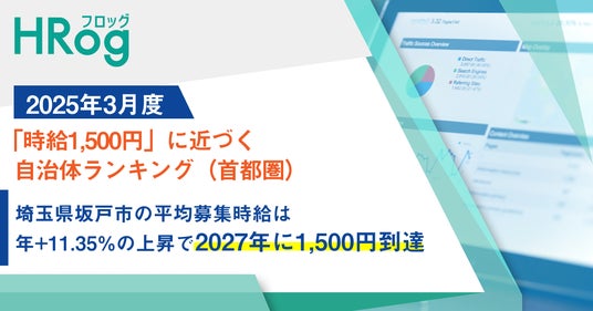分析用求人ビッグデータを提供する、株式会社フロッグ(所在地:東京都千代田区、代表取締役:阪野 香子、以下「当社」)は、「2025年3月度 『時給1,500円』に近づく自治体ランキング(首都圏)」を発表しました。