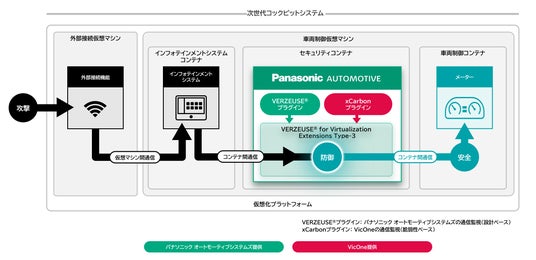 本セキュリティソリューションは、2024年10月にパナソニック オートモーティブシステムズが発表した攻撃検知・防御ソリューション「VERZEUSE(R) for Virtualization Extensions Type-3」に、VicOneの車両向け組込型セキュリティソフトウェア「xCarbon」を統合し機能拡張しました。