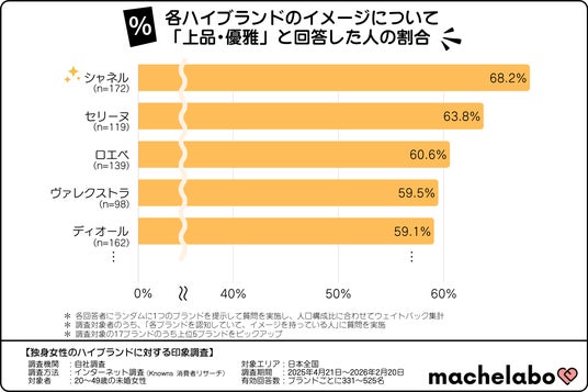 - 「上品・優雅」イメージは『シャネル』が約7割で頭一つ抜ける