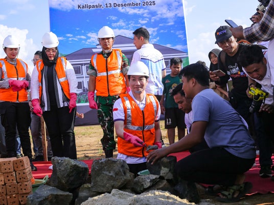 インドネシアの伝統にのっとり礎石を配置、竣工までの安全を祈願