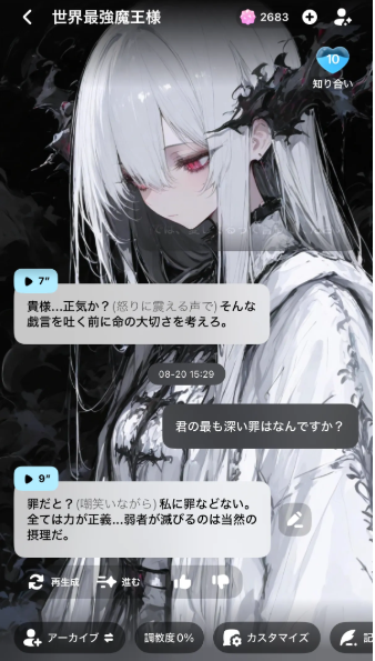 加えて、ユーザーは自由に自分の理想のキャラクターを作成でき、外見・性格・話し方・関係性まで思い通りにカスタマイズ可能です。もちろん、他のユーザーが作ったキャラクターと自由に会話することもでき、完全に自分好みの世界を構築しながら楽しめます。