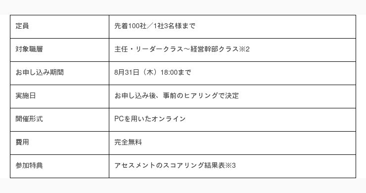 ~ 100社限定!オンラインにてアセスメント実施会を開催 ~