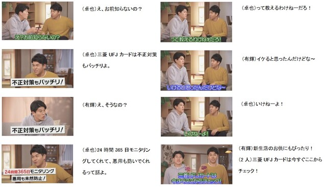 【有輝】じゃあぜひ三菱UFJカードで僕にプレゼントを…買ってください。