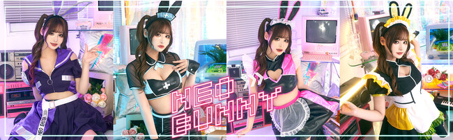 シリーズ第二弾は「ネオバニー」。今回のうさぎコスチュームは、流行りの近未来感を取り入れ、クールに写真映えする4型です。パキッとしたカラーリングや、エナメルやオーロラ生地の異素材MIXデザインがポイントです。