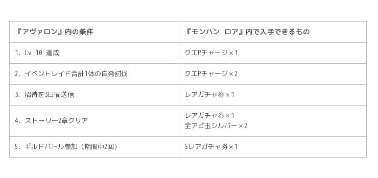 株式会社グラニ(本社:東京都港区、代表取締役社長:谷 直史、以下、グラニ)、株式会社カプコン(本社:大阪市中央区、代表取締役社長:辻本 春弘、以下、カプコン)は、ソーシャル・ネットワーキング・サービス(SNS)「GREE」上で提供している、「モンスターハンター」シリーズのソーシャルカードゲーム『モンスターハンター ロア オブ カード』(以下『モンハン ロア』)と、クルーズ株式会社(本社:東京都港区、代表取締役社長:小渕 宏二)のGREE版 『アヴァロンの騎士』(以下『アヴァロン』)と初のコラボレーションキャンペーンを実施します。