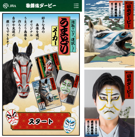 さらに、馬の画像や、自分や友人などの顔にオリジナルの隈取を合成できるコンテンツや、日本ダービーの結果に応じて賞品が当たるTwitterキャンペーンなども実施いたします。ぜひお楽しみください!