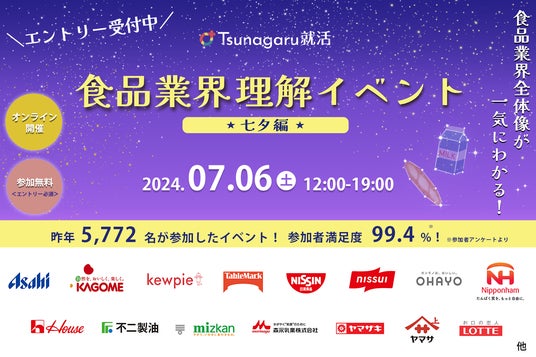 株式会社マキシマイズが運営するTsunagaru就活は、2026年卒業予定学生(以下、「26卒学生」)「食品業界理解イベント 七夕編」を2024年7月6日(土)にオンラインにて開催します。