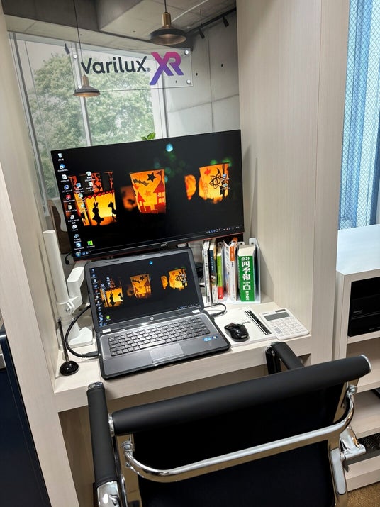 今回のリニューアルで、南千里店ではバリラックス専用のフィッティングパラメーター測定器が最新の「ビジオフィス3」へと変更に。実際の使い心地を確認するための体験コーナーと、フィッティングパラメーターを測定するための専用スペースを設けました。体験コーナーには複数のパソコンモニターや、小さい文字の雑誌、文房具が置いてあり、仕事や作業用のデスクを模した作りになっています。また、高さの調節のできる椅子とパソコンモニターで、バリラックスの見え心地のチェック体験も可能です。