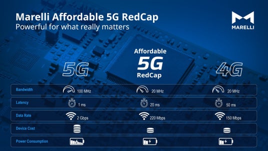 自動車業界向けのグローバル・テクノロジー・サプライヤーであるマレリは、車載テレマティクス向けの画期的な「手頃な5G RedCap(Reduced Capability:機能縮小)技術」を発表します。この技術は、4Gと比べて50%高いデータ速度(レート)、2.5倍低い遅延(レイテンシ)を実現しながら、価格は同等の水準を維持します。